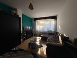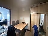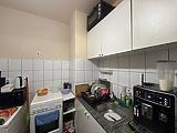 The apartment features a modern layout with a bright, spacious room and a separate kitchen, providing a comfortable living space for singles or couples.