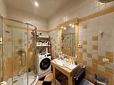The heart of the apartment is the 32 m² open-plan living room with an American-style kitchen, offering a spacious, sunny, and cozy atmosphere. The windows overlook green areas and the base of the Castle Hill, providing a particularly peaceful environment.