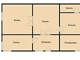 A ház jelenlegi elosztása 3 szobából, konyhából és egy fürdőszobából áll.