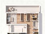 A lakásban egy 44 m2-es amerikai konyhás, étkezős nappali, 3 szoba, 2 fürdőszoba, előtér, közlekedő, mellékhelyiség és 2 terasz található (7 m2+ 23 m2). Gyönyörű, egyedi, minőségi burkolatok lettek beszerelve.