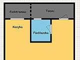 A hátsó telekrészen egy kb. 60 nm-es térkövezett udvar rész, egy kb. 10 nm-es lekerített terasz és egy kb. 12 nm-es tároló is megtalálható.