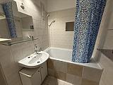 A fürdőszoba új burkolatot kapott, kádas. A mosógép be-és kiállása ebben a helyiségben lett kialakítva.