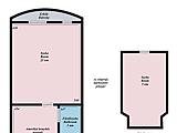 - 2 szobás (alsó szint: nappali, konyha, fürdő, WC – felső szint: hálószoba)