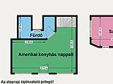 A lakás 480 cm-es belmagassága lehetővé tette egy stabil, tágas felső szint kialakítását, így a 25 m²-es alsó részhez egy 12 m²-es felsőrész is tartozik, amely által az összterület 37 m². A felső szinten kialakított szoba kényelmes hálóként vagy dolgozószobaként is használható, hiszen a belmagassága 224 cm, így teljes értékű térként funkcionál.