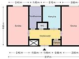 Az ingatlan elosztása kiváló, minden helyiség külön nyíló, konyhája nagy ablakos, a wc és a fürdőszoba szeparált.