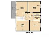 Emelet: 4 szoba, fürdőszoba, mellékhelyiség.