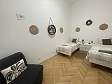 A lakás külön nyíló, rendkívül tágas szobákkal rendelkezik, így két fő számára ideális, de gyermekes családok számára is kényelmes otthont biztosít.