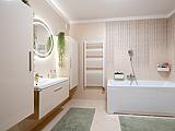 A fűtésről kondenzációs kazán és az összes helyiségben padlófűtés, míg a nyári melegben a hűségről két inverteres klíma gondoskodik.