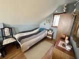 A felső szint egy hangulatos nappalit, egy hálószobát, fürdőszobát és egy erkélyt rejt, ahonnan lélegzetelállító panoráma nyílik a városra és a környező tájra. Délkeleti fekvése miatt a ház egész nap napfényben fürdik, így mindig világos és tágas tereket biztosít.
