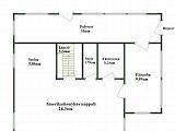 Az alsó szinten tágas előszoba, közlekedő, amerikai konyhás nappali, egy külön szoba, fürdőszoba és spejz található.