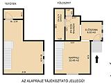 A földszinti részen konyha, szoba, kamra, kádas fürdőszoba és előszoba van, az emeleten egy szoba került kialakításra, de egy mosdó kialakítására van még lehetőség. Kb. 8 éve lett cserélték a tetőt, a villanyvezetékeket, a bejárati ajtót és az emeleti részen található nyílászárókat. A fűtést gázkonvektor biztosítja, a meleg vizet pedig villanybojler. Tartozik a házrészhez egy 100 m2 közvetlen kertkapcsolat és autóbeálló.