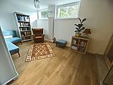 Az ingatlan fűtéséről egy Bosch kondenzációs kazán gondoskodik, a felső szinten padlófűtéssel, az alsó szinten pedig radiátoros fűtéssel. Szintén bekerült egy ultrahangos vízlágyító is. Mindkét szinten prémium minőségű burkolatok és szaniterek kerültek kiválasztásra és le-, illetve behelyezésre.