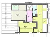 A szigetelt ház 2 lakásos, 3 szintes, amelyből az eladásra kínált lakás a felső két szinten helyezkedik el. A lakás 6 szobával rendelkezik, amelyből az első emeleten található egy nappali + 2 szoba, a többi szoba a második emeleten helyezkedik el.