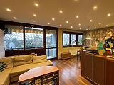 A lakás központi része a tágas, nagy üvegfelülettel rendelkező, dk-i fekvésű, erkélykapcsolatos, szép kilátással rendelkező amerikai konyhás nappali.