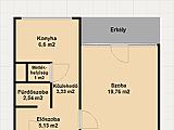 2 szoba, étkezős konyha, kádas fürdőszoba, mellékhelyiség, erkély.