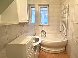 Konyhája világos, ideális méretű. Szomszédságában találjuk az ablakos, sarokkáddal szerelt fürdőszobát. A külön wc-t az előszobából közelíthetjük meg.