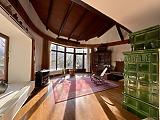 -A nyílászárók színezett műanyagok, a nappaliban fából készültek.