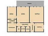 2+1 félszoba, ablakos konyha, kádas fürdőszoba, mellékhelyiség, 2 gardrób, kamra, közlekedő, erkély.