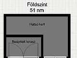 A földszinten kialakításra került egy nagy nappali, mely könnyedén két szobára osztható, konyha, étkező, kamra, gardrób, wc, egy kb 10 nm-es, beépített terasz és egy kb. 20 nm-es kert.