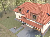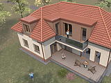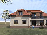 A ház kialakítása: a földszinten egy hálószoba, az emeleten négy további hálószoba, három fürdőszoba és külön WC kap helyet. A nappali, a konyha és az étkező tágas egybefüggő teret alkot. A nappaliból nyílik egy 25 m2-es terasz is. A fűtés, hűtés hőszivattyúval megoldott. A praktikumot a garázs és a külön tároló tovább növeli. 3x25 A elektromos kapacitás normál és H tarifával biztosítja a költséghatékony üzemeltetést. A burkolatok, belső ajtók, szaniterek és a térkövek választhatóak.