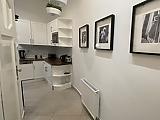 A lakásba lépve egy modern előszobába jutunk. Innen közelíthetjük meg az épített zuhannyal, mosdóval, törölközőszárítóval és mosógéppel szerelt fürdőszobát továbbá a kézmosóval is rendelkező, külön wc-t.