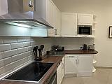 Közvetlen szomszédságában találjuk a teljeskörűen gépesített (sütö, főzőlap, elszívó, mosogatógép, hűtőszekrény, beépített mikro) konyhát.
