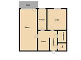 2 szoba, étkező, konyha, kádas fürdőszoba, mellékhelyiség, közlekedő, előszoba, 4 m2-es erkély.