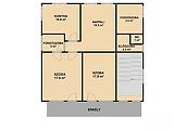 Földszint: 3 szoba, konyha, kamra, kádas fürdőszoba, külön mellékhelyiség, előszoba, közlekedő.