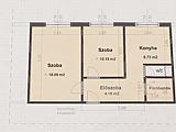 2 szoba, konyha, kádas fürdőszoba, mellékhelyiség, előszoba.