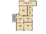 3 szoba, konyha, kamra, fürdőszoba + wc, előszoba, kazánház, fedett terasz.
