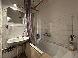 A fürdőszoba és Wc egy helyiségben kaptak helyet, itt található a mosógép kivezetése is.