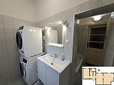 A lakásba belépve elsőként az előszobába térünk, ahonnan nyílik egy hálószoba, a kádas fürdő, külön nyíló wc és az étkezős konyha, ahonnan tovább juthatunk a nagyobb hálószobába. A lakás néhány éve részleges felújításon esett át. Új burkolat a szobákban és az előszobában, többségében ki lettek cserélve a szaniterek, új IKEA konyhabútor, konyhai gépesítés és egy konyhai víztisztító lett beépítve, ami a csapvíznél és az ásványvíznél tisztább, egészségesebb ivóvízről gondoskodik. Az elektromos hálózat felújítása már korábban megtörtént, a teljesítmény 3X16 amperre lett bővítve, amely lehetővé teszi a nagy háztartási gépek egyidejű használatát. Az ablakok modern, 3 rétegű üvegezéssel ellátott faablakok, melyeket fém redőnnyel és szúnyoghálóval szereltek fel. 2022-ben kívülről lett szigetelve a lakás. A gázkazánok javítása folyamatban van. A lakásban megőrzésre került egy cserépkályha, mely télen nem csak hangulatos, de jó meleget is képes biztosítani. A nagyobb szoba nyáron légkondicionálóval hűthető. A konyha gépesítése (mosogatógép, hűtő), a mosógép és a szárító a vételár részét képzi.