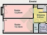 Emelet: előszoba, 2+2félszoba, fürdőszoba, wc
