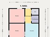 Lakrészenként kb. 60 NM, jelenleg mind ki van adva, a villany és a víz mind külön mérőórán van, a gáz egy óráról működik.