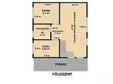 Földszint: 2 szoba, amerikai konyhás nappali, zuhanyzós fürdőszoba + mellékhelyiség, közlekedő