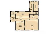 3 szoba, nappali, konyha, fürdőszoba kádas kialakítással + mellékhelyiség, előszoba, közlekedő, tároló.