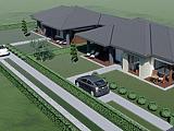 Amerikai konyhás nappali + étkező, 3 szoba, háztartási helyiség, fürdő + mellékhelyiség, előszoba, 2 db fedett terasz, nyári konyha.
