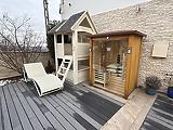-A kertben kialakított szauna és a beépített medence igazi különlegességet jelentenek, amelyek tökéletes kikapcsolódást biztosítanak az év minden szakaszában.