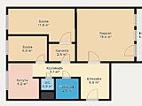 Az ingatlan praktikus kialakításának köszönhetően minden helyiség külön nyílik, a tágas nappali mellett két jól kihasználható szoba biztosít kényelmes életteret. A lakás egyedileg szabályozható távfűtéssel rendelkezik.