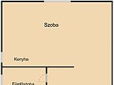A szobában fa parketta, a többi helyiségben pedig járólap található.