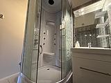 A fürdőszobában hidromasszázsos zuhanykabin került kialakításra. A lakásban gardrób és spejz is helyet kapott, így a tárolás nem kompromisszum kérdése.