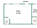 A helyiségek jó méretűek, világosak és praktikus elrendezésűek, így akár külön funkcionáló munkaterületek is könnyen kialakíthatók.