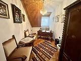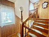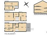 A tégla ház 1991-ben épült szinteltolással. Előkert és tágas, rendezett kert tartozik hozzá. A földszinten található egy ablakos gardrób, tárolóhelyiség, hidromasszázs zuhanykabinos fürdő és fűtött garázs elektromos kapuval. Fél emelettel feljebb nyílik a nagy, étkezős konyha, amelyből a 16 m2-es fedett teraszon át a gondozott hátsó kertbe léphetünk ki. A félemeleten tágas, napfényes nappali helyezkedik el látványkandallóval, faberakásos mennyezettel, valamint a Valentino burkolatú, kádas fürdőszoba. Szintén fél emelettel feljebb található egy kertre néző hálószoba, amit a következő szinten két külön bejáratú hálószoba követ. Igény esetén a padlástér tovább bővíthető. Az ingatlan minőségi anyagokból épült, időtálló, igényes kivitelezéssel. Műanyag hőszigetelt ablakokra cserélték a nyílászárókat, a lépcsőházban 4 ablak fa maradt. Pala fedi a tetőt. A kertben fúrt kútról működő automata öntözőrendszert építettek ki és egy 6X3 méteres, lefedhető medencét, amit hideg-meleg vízzel lehet feltölteni. Kandeláberes kerti világítás és a tuja- és rózsasorral szegélyezett pázsit emeli az udvar hangulatát. A garázs mellett 3 autó számára zárt parkolási lehetőség is biztosított a térkővel burkolt udvaron. Riasztórendszer és kamerás kaputelefon van beépítve.
