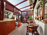 Az ingatlan saját garázzsal rendelkezik, emellett az utcán a parkolás ingyenes. A házhoz elő- és hátsó kert is tartozik, valamint egy beépített, fűthető télikert, amely egész évben kellemes, világos plusz életteret biztosít. A kert gondozott, szép állapotú, ideális pihenésre és családi programokra.