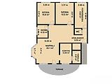 Emelet: 3 szoba, nappali, konyha, fürdőszoba, wc, tároló, terasz, közlekedő.