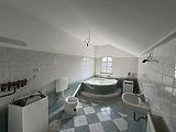 Földszint: 3 szoba, nappali, konyha, kamra, 2 fürdőszoba, wc, közlekedő.