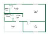 Az elosztás ideális: 24 nm-es amerikai konyhás nappali, egy 7,5 nm-es félszoba, zuhanyzós fürdőszoba, előszoba és egy hangulatos, fedett terasz biztosítja a kényelmes mindennapokat.