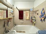 A fürdőszobában öntött vaskád található, a wc pedig egy külön helyiségben helyezkedik el.