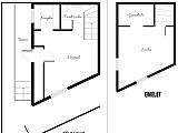 Az ingatlan 2 szintes elosztású, a földszinten a nappali, konyha és a fürdő található, az emeleten pedig egy tágas szoba gardróbbal.