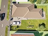 A tető Terrán Zenit cserép fedéssel készült, ami tartósságával és esztétikus megjelenésével tökéletesen illeszkedik az épület modern jellegéhez. A fűtést korszerű hőszivattyús rendszer biztosítja, amely energiatakarékos módon gondoskodik a meleg vízről és a fűtésről, így az ingatlan környezetbarát megoldást kínál. Összességében a ház minden részlete a komfortot, az energiatakarékosságot és a modern életmódot szolgálja, miközben harmonikusan illeszkedik a természetes fényviszonyokhoz.